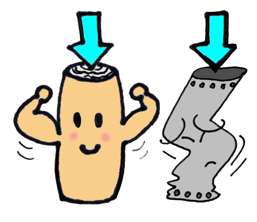 木は鉄の4倍以上の引っ張り強度、コンクリートの5倍以上の圧縮強度を誇っています。木は押したり引いたりする力にバランスよく抵抗する特性をもっています。まさに構造として最適の材料といえます。